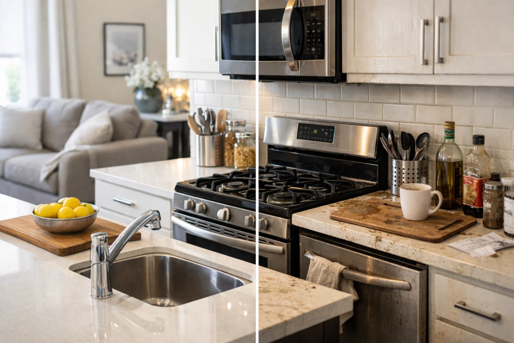 In today’s market, the majority of buyers begin their property search online. Listing photos are the very first showing a home receives, and cleanliness shows up clearly on camera. Smudged glass, greasy kitchen surfaces, and dusty furniture all appear in photographs and reduce click-through rates on listings.
